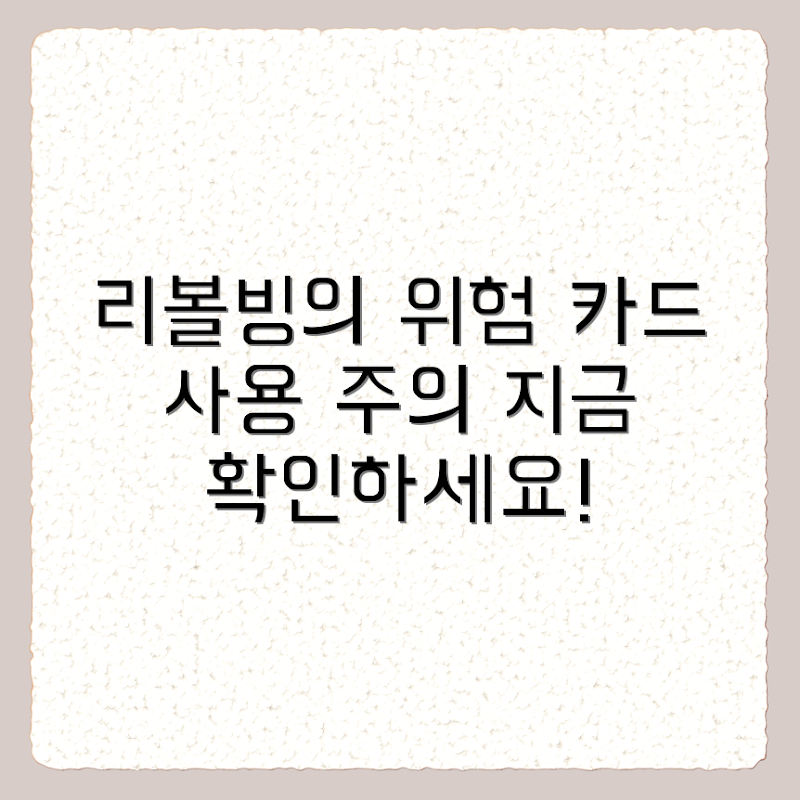 Q: 카드 리볼빙의 주요 위험성은 무엇인가요?A: 카드 리볼빙의 가장 큰 위험은 높은 이자율로 인해 부채가 급격히 증가할 수 있다는 점입니다. 최소 한도만 지불하고 계속 이월할 경우, 잔액이 늘어나면서 이자도 불어날 수 있어 재정적인 부담이 커질 수 있습니다.